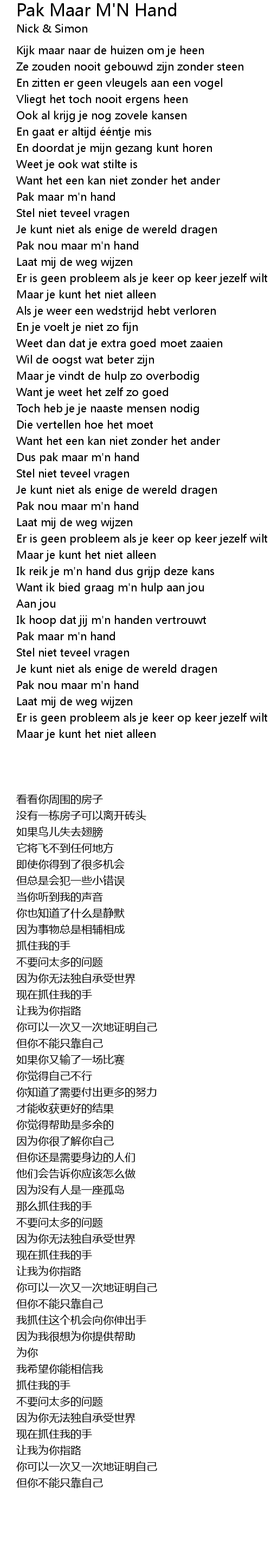 | Ik hoop dat jij m'n handen vertrouwt | |