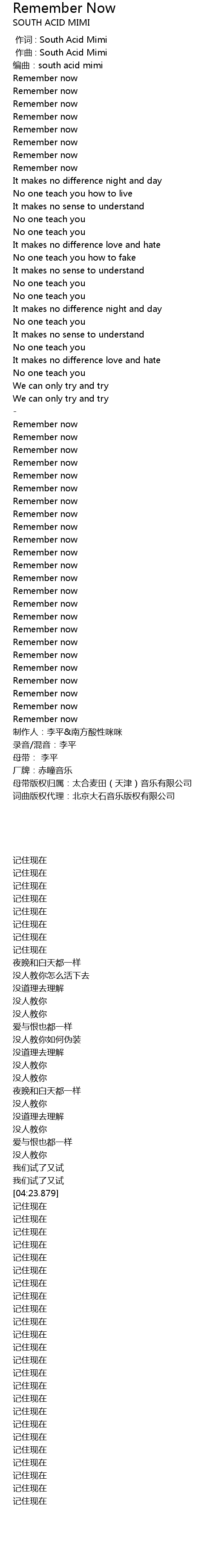 | [08:28.286] | 制作人:李平&南方酸性咪咪 |