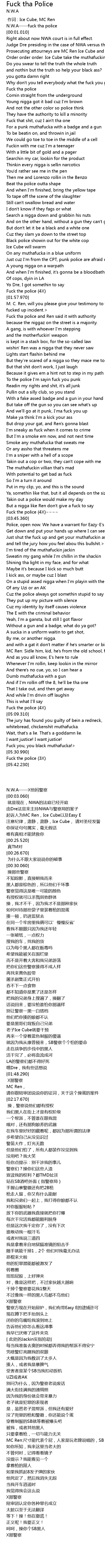 | [00:30.060] | Fuck tha police |