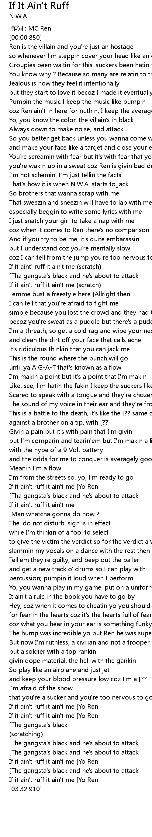 | [00:00.00] | 作词 : MC Ren |