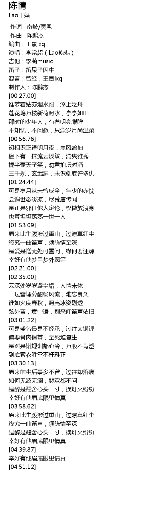 | [04:19.47] | 终究一曲笛声,须陈情至深 |