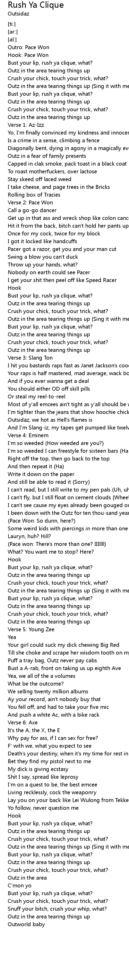 Bust your lip, rush ya clique, what? |