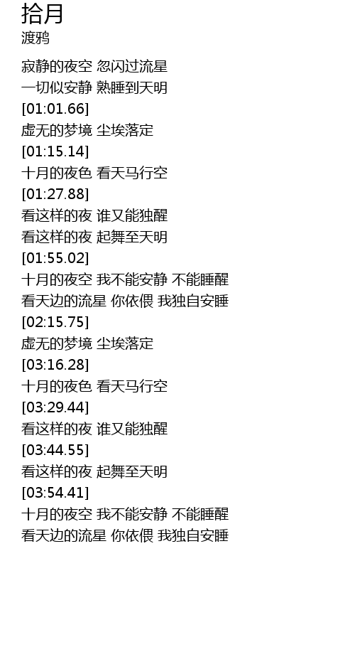 | [01:18.13] | 十月的夜色 看天马行空 |