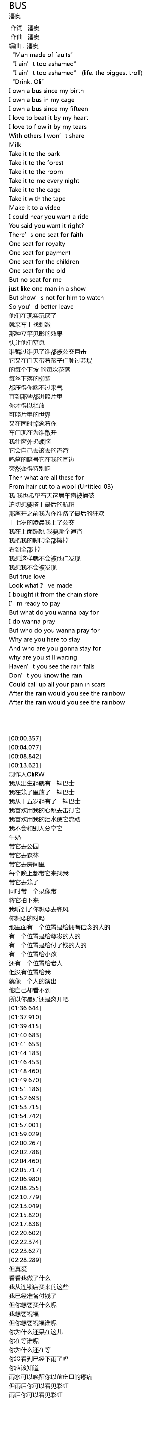 | [00:00.357] | 编曲:潘奥 |