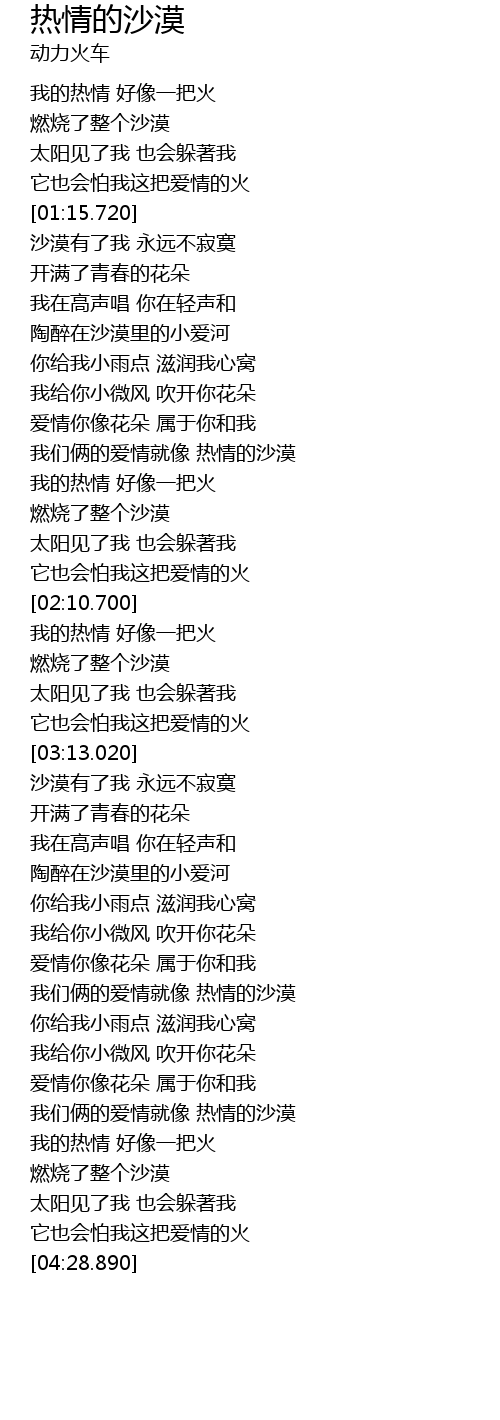 | [04:02.400] | 我们俩的爱情就像 热情的沙漠 |
