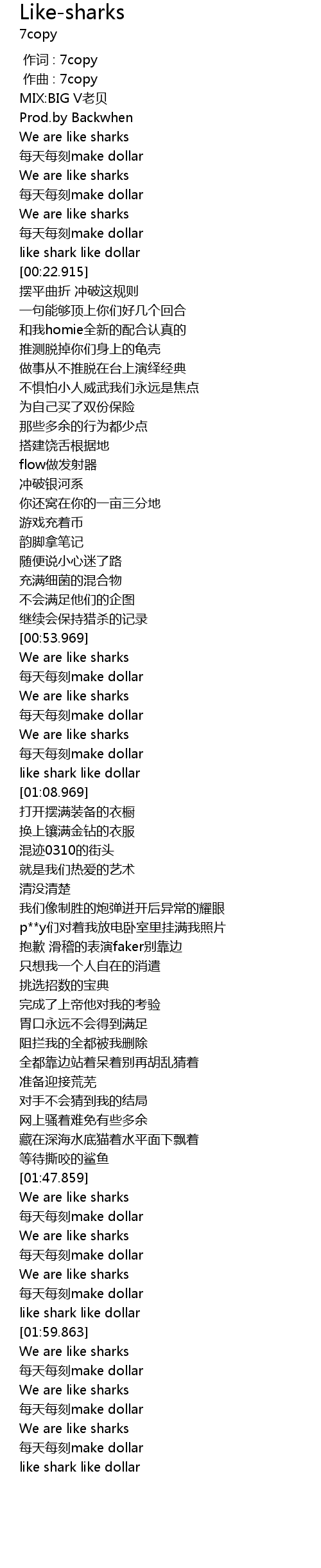 | [01:46.969] | 等待撕咬的鲨鱼 |