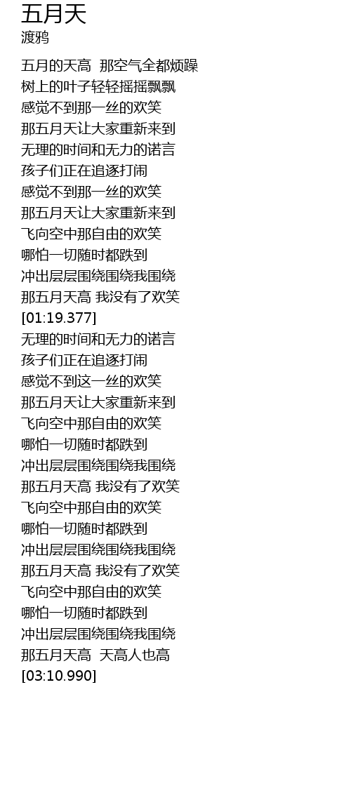 | [01:14.558] | 那五月天高 我没有了欢笑 |