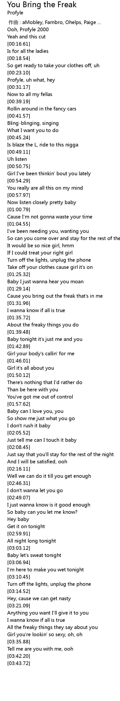 | [01:29.77] | Cause you bring out the freak that' s in me |