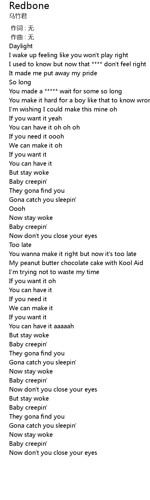 | Song | Redbone |