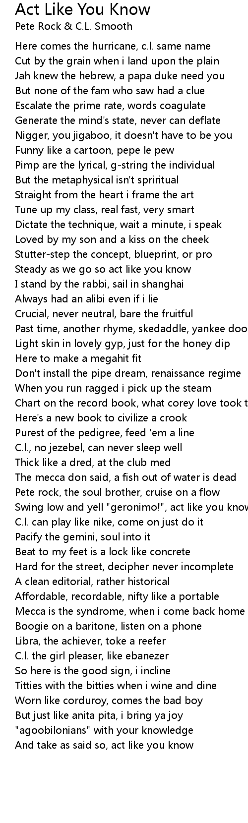 And take as said so, act like you know |