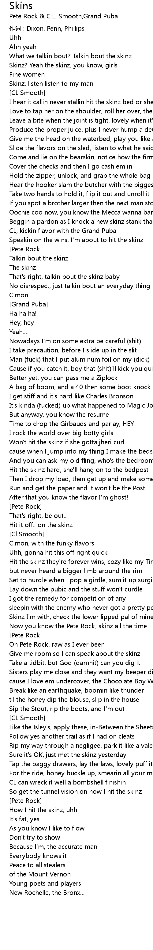 | Now you know the Pete Rock, skinz all the time | |