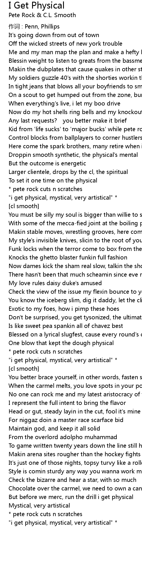 | " i get physical, mystical, very artistical" |