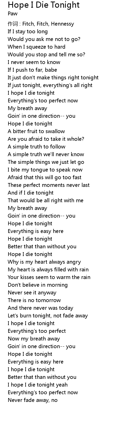 | I hope I die tonight yeah | |