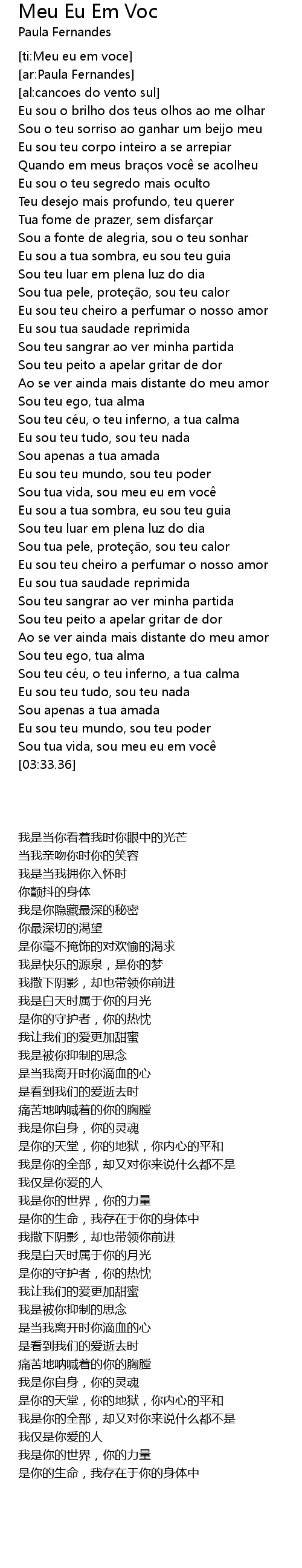 | [03:24.66] | Sou tua vida, sou meu eu em voc |