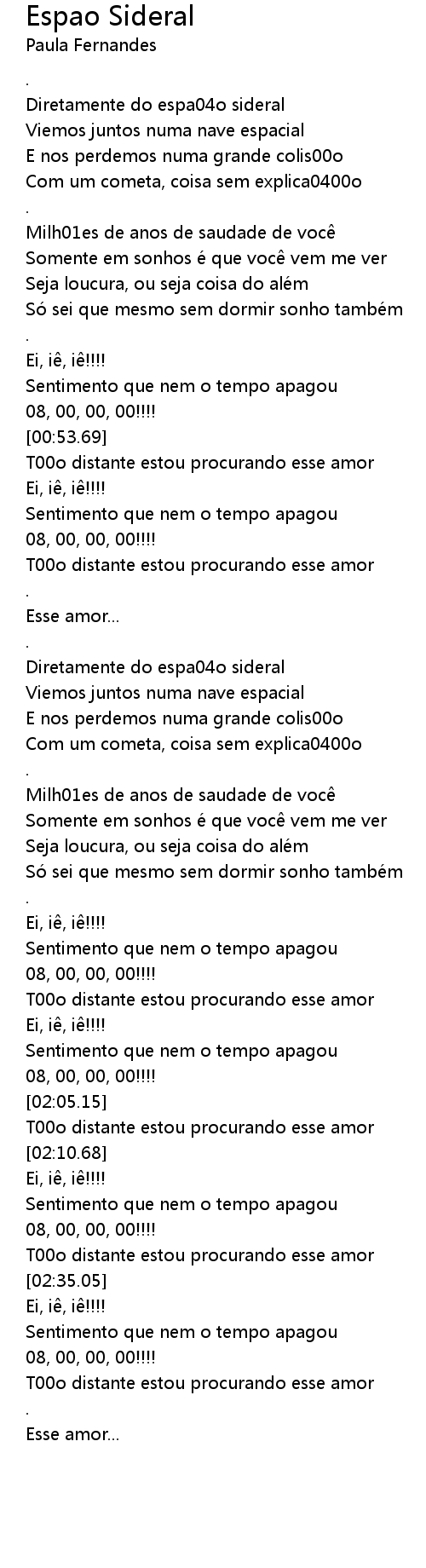 | [00:20.87] | Diretamente do espa04o sideral |