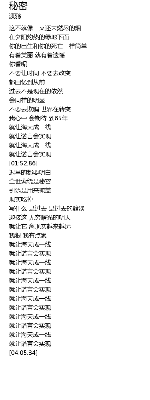 | [02:40.31] | 全世萦绕是秘密 |