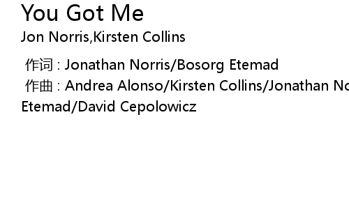 | [00:00.00-1] | 作曲 : Andrea Alonso/Kirsten Collins/Jonathan Norris/Bosorg Etemad/David Cepolowicz |