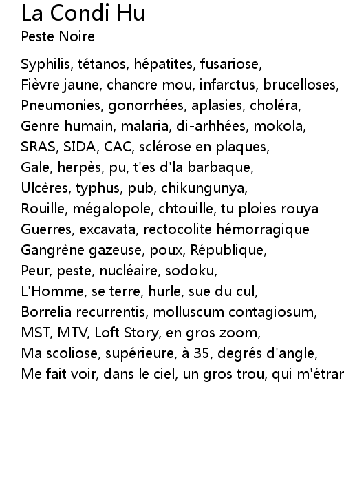 | Gale, herpès, pu, t'es d'la barbaque, | |