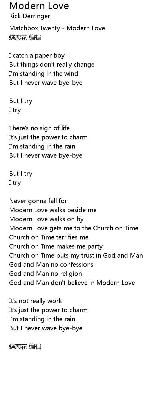 | God and Man don't believe in Modern Love | |