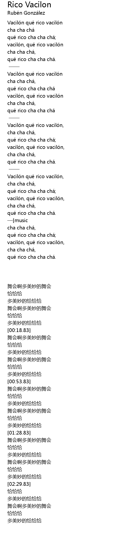 | [01:16.74] | que rico cha cha cha |