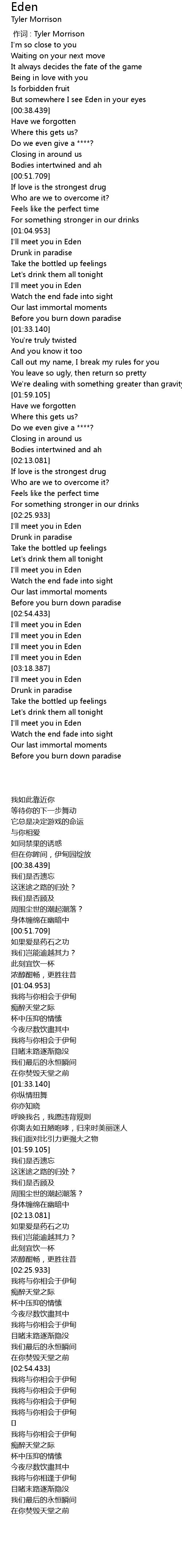 | [00:33.972] | But somewhere I see Eden in your eyes |