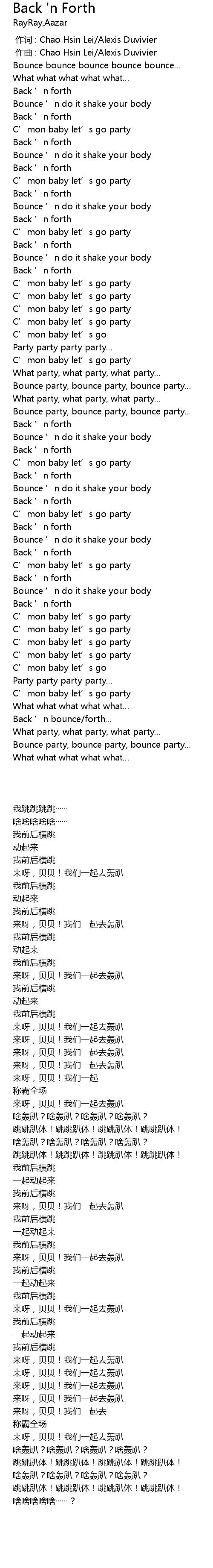 | [00:41.522] | Back ' n forth |