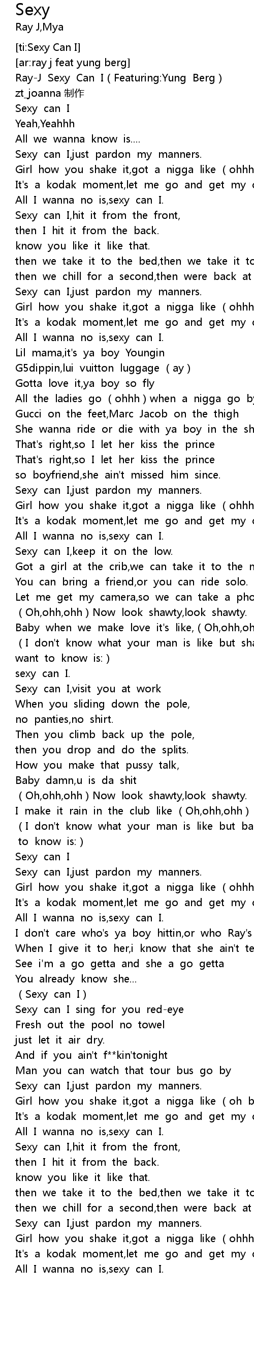 | [00:01.428] | RayJ Sexy Can I Featuring: Yung Berg |