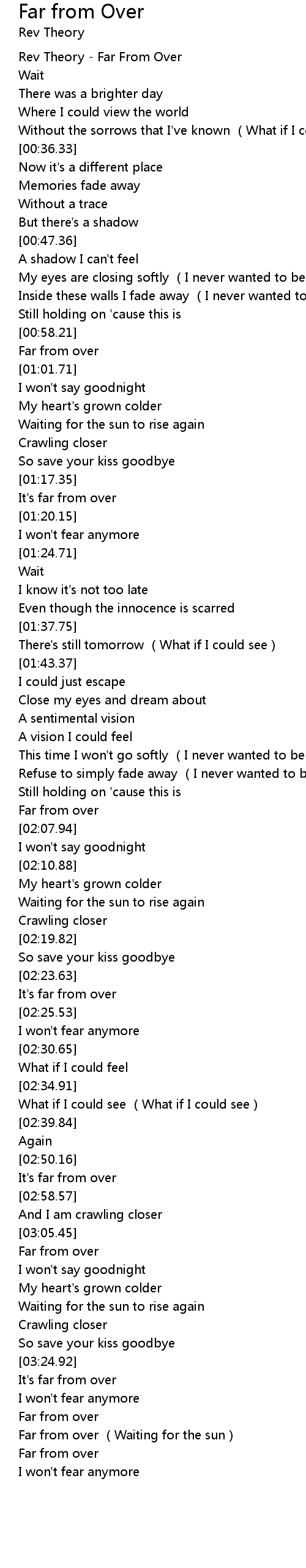 | [03:35.70] | Far from over (Waiting for the sun) |