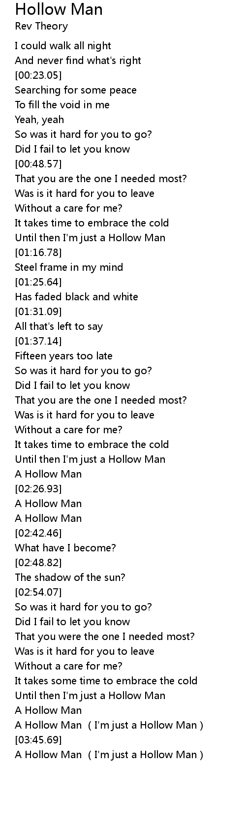 | [03:22.63] | Until then I'm just a Hollow Man |