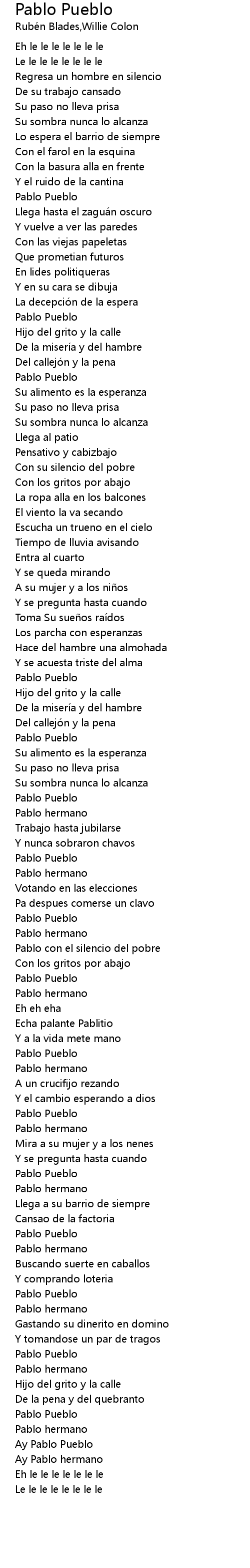| Song | Pablo Pueblo |