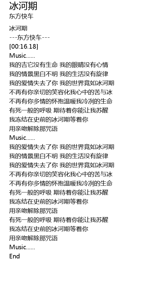 | [00:58.59] | 我的爱情失去了你 我的世界竟如冰河期 |