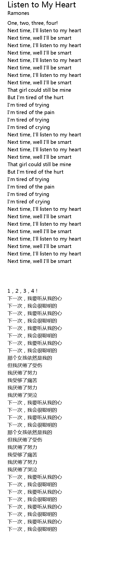 | [00:47.13] | Next time, I'll listen to my heart |