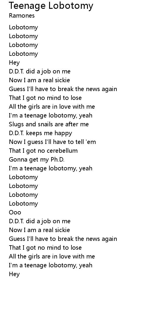I'm a teenage lobotomy, yeah |