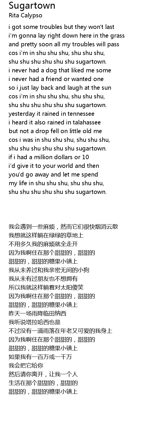 | [02:12.400] | shu shu shu shu shu shu sugartown. |