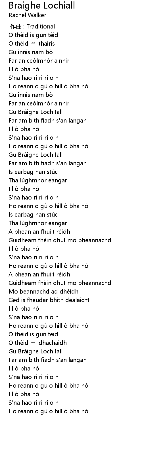 | Song | Braighe Lochiall |
