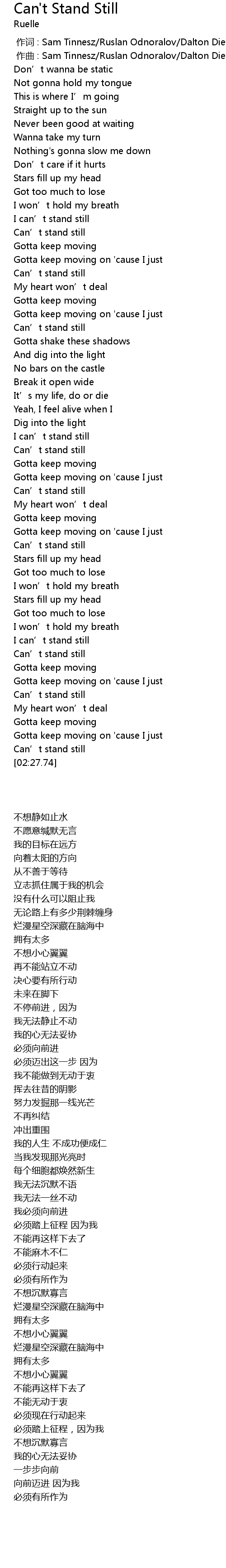 | [01:43.71] | Can' t stand still |