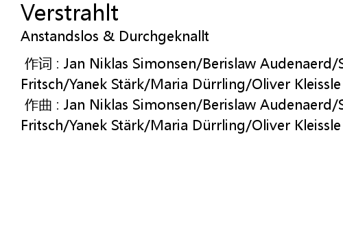 | [00:00.00-1] | zuò qǔ : Jan Niklas Simonsen Berislaw Audenaerd Steven Fritsch Yanek St rk Maria Dü rrling Oliver Kleissle |