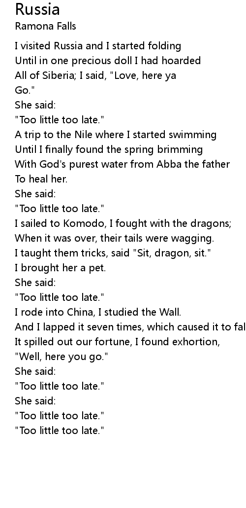 All of Siberia; I said, "Love, here ya |