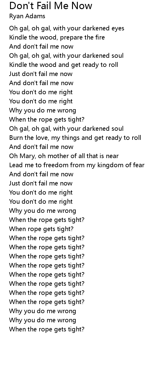 Just don't fail me now |