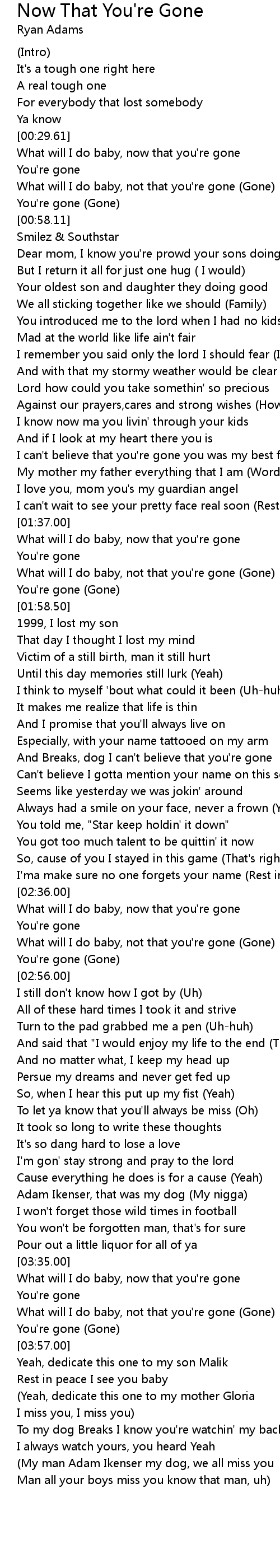And Breaks, dog I can't believe that you're gone |