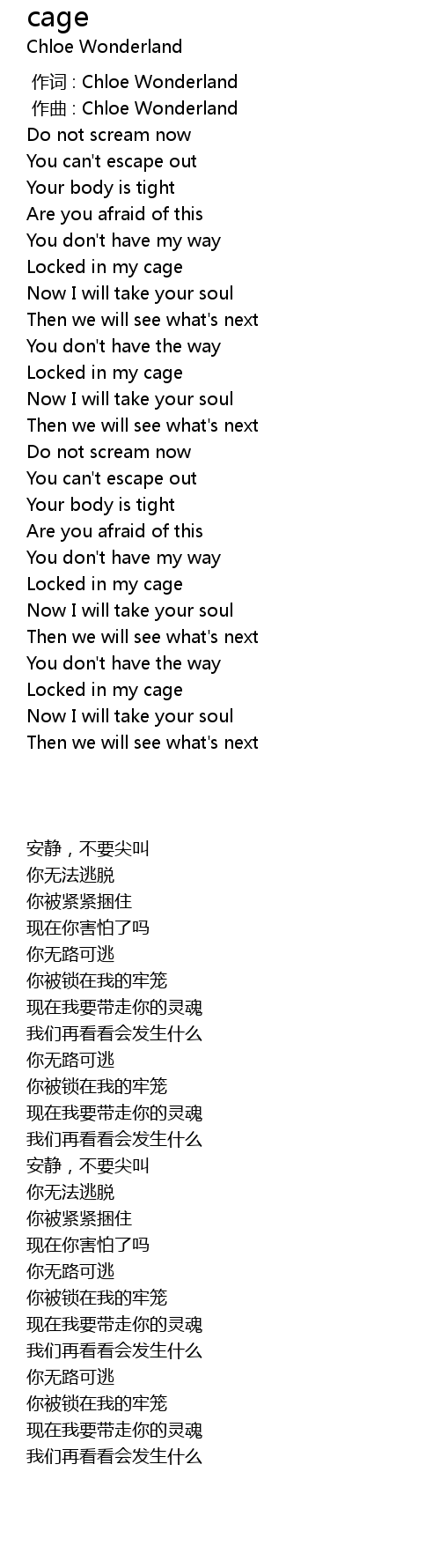| [00:00.000] | 作词 : Chloe Wonderland |
