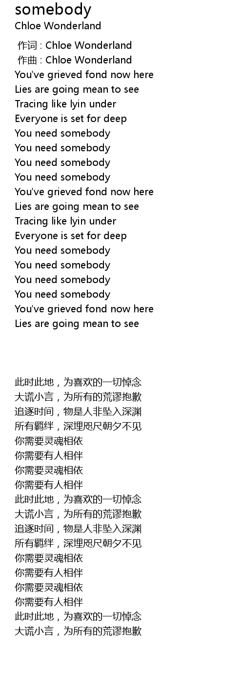 | [00:00.000] | 作词 : Chloe Wonderland |