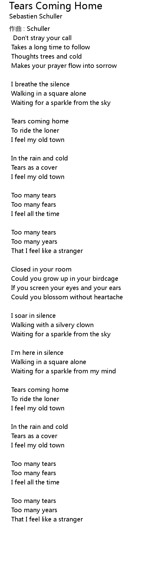 | Tears coming home | |