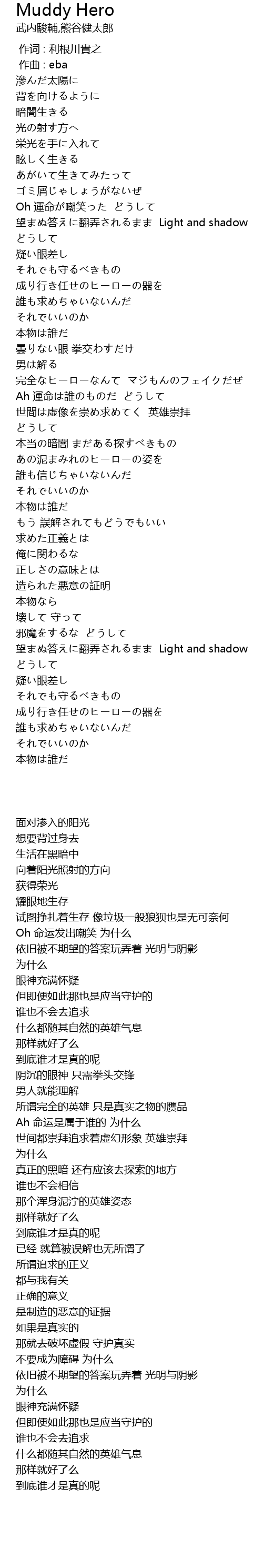| [01:36.55] | 完全なヒーローなんて マジもんのフェイクだぜ |