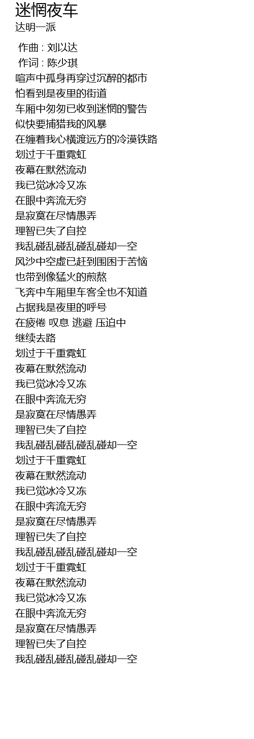 | [01:59.0] | 飞奔中车厢里车客全也不知道 |