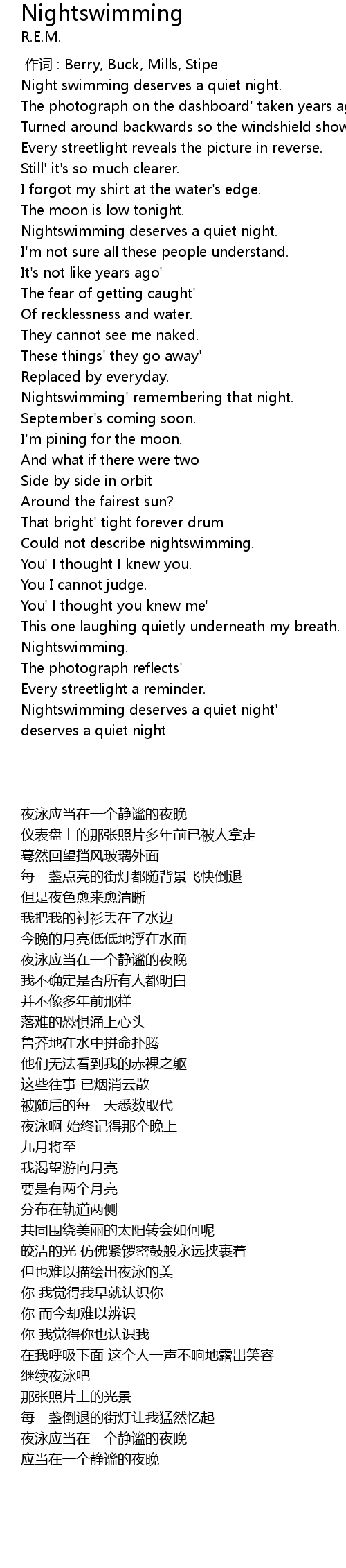 | [03:24.72] | Nightswimming deserves a quiet night' |