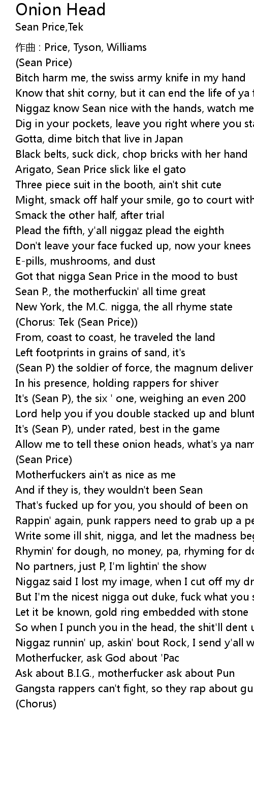 | Allow me to tell these onion heads, what's ya name (Sean P) | |
