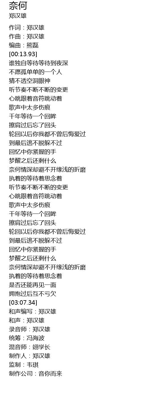 | [03:18.33] | 和声编写:郑汉雄 |