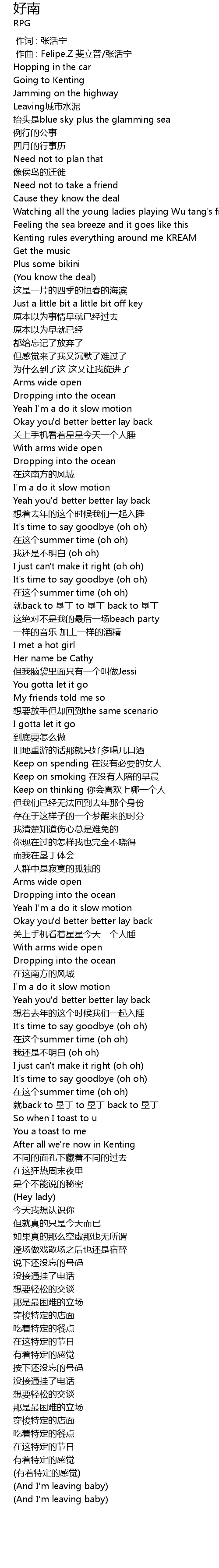 | [00:01.00] | 作曲 : Felipe.Z 斐立普/张活宁 |