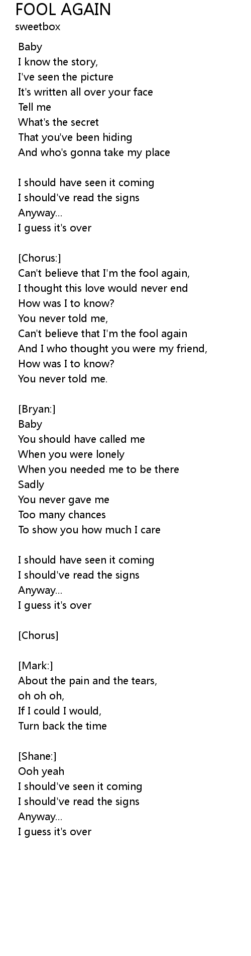 | Can't believe that I'm the fool again | |